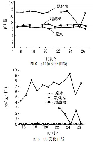(6)處理水pH值達標率:超濾法達標率為95.8%,氧化法為16%。