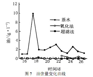 (4)處理水含油達標率:超濾法達標率91.6%,氧化法為10%。
