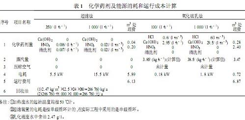 (2)處理每m3乳化液廢水的投資成本(按10年計):超濾法為4.62元,氧化法為3.23元。