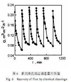 3.表面活性劑及硝酸的清洗可以基本上恢復膜的通量,膜再生具有良好的重復性。