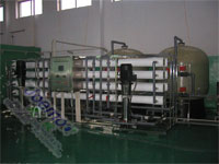原水→原水加壓泵→多介質過濾器→活性炭過濾器→軟水器→精密過濾器→第一級反滲透 →PH調節→中間水箱→第二級反滲透(反滲透膜表面帶正電荷)→純化水箱→純水泵→微孔過濾器→用水點