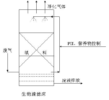 生物滴濾床(池)因為其具有環境條件易于控制,毒性新陳代謝物質經營養液循環流動可以及時排出,具有更低的壓降、pH值和營養控制及低運營成本等優點,因此在本次除臭技術選擇時考慮采用高效率的生物滴濾床(池)裝置。