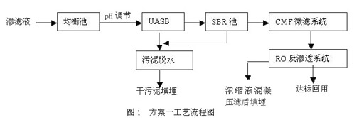 (1)從廣州市興豐填埋場的滲濾液處理要求以及環境敏感性、經濟技術綜合效益等方面進行綜合評估,認為方案一即pH調節 UASB SBR CMF RO工藝技術先進、可操作性強,完全符合擴建工程項目提出的要求,為優選推薦方案。