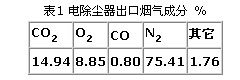 回轉窯經過40多年不間斷的技術改造,臺時產量由原設計的13.9t/h提高到17.5t/h;處理的廢氣量由設計時的1.2×105m3/h增加到目前1.62×105m3/h;標況下入口含塵濃度由容許值的40g/m3增加到107.54g/m3;系統漏風率的增加使電場風速由設計時的0.833m/s上升到1.125m/s;收塵效率降至90%以下。電除塵器出口煙氣成分見表1。